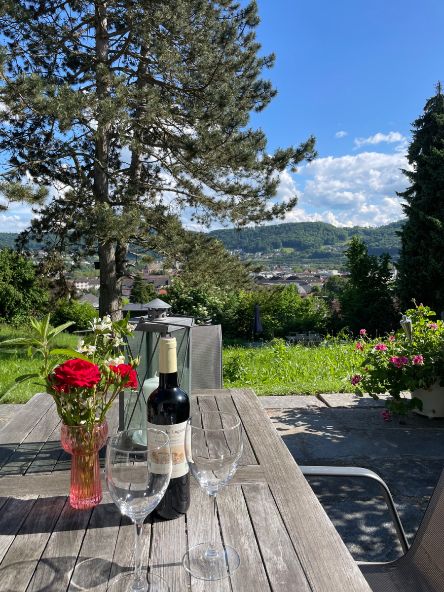 Immer dabei: der unvergleichliche Blick über das parkähnlich angelegte große Grundstück, über die Dächer der Stadt Bad Säckingen bis in die Schweiz.